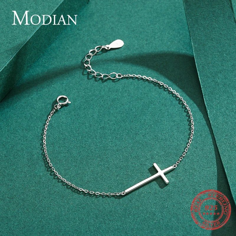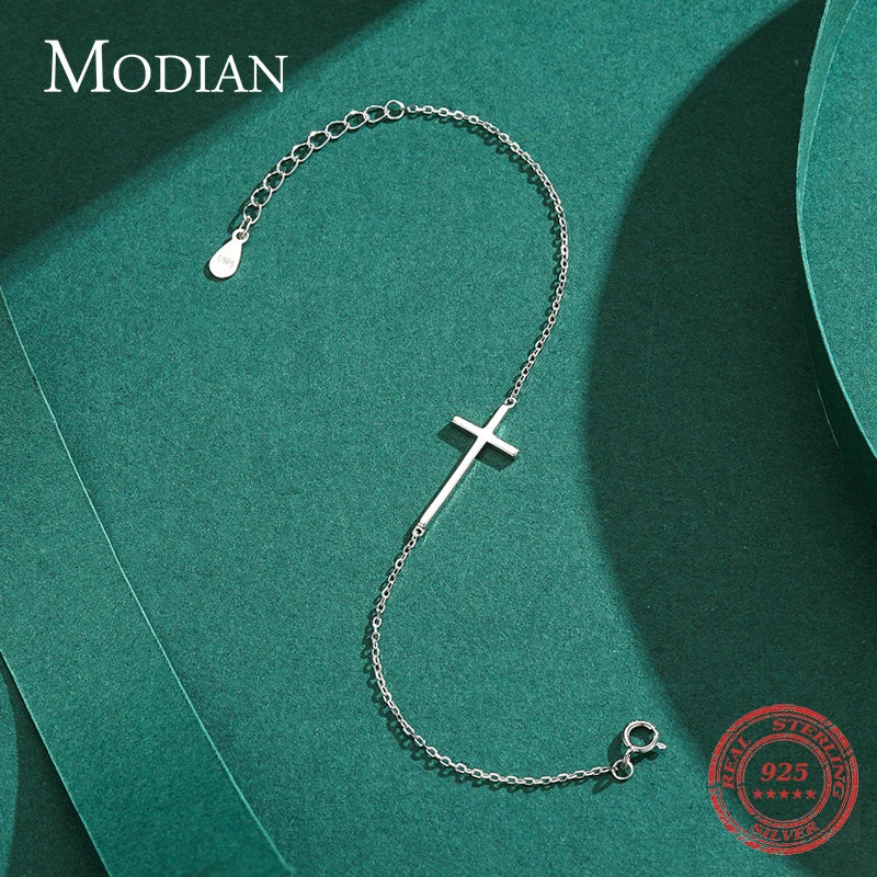 Modian 100% 925 Sterling Silver Classic Simple Cross Religious Adjustable Bracelets Chain For Women Fine Jewelry Accessories